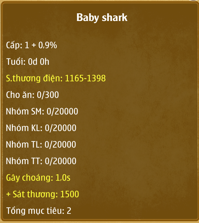 - Tổng số mục tiêu cắn sẽ là 2 - 3 - 3 tùy thuộc cấp độ của Baby shark
