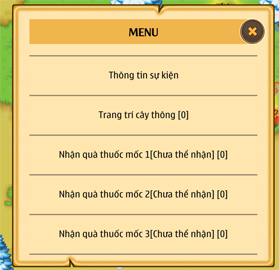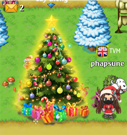 - Các bạn bấm vào cây thông để trang trí, mỗi lần trang trí cần: 3 Trái châu + 2 Hoa tuyết + 15.000 vàng