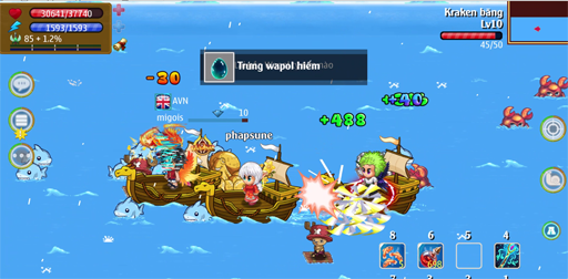 - Mỗi hit đánh trúng Kraken có thể nhận được 1 trứng Kraken và trừ đi 1 “Giỏ trứng Kraken “ hoặc “ Túi trứng Kraken “